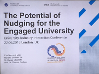 S2BMRC Team members Eva Sormani (corresponding author) and Thomas Baaken presented a paper on “The Potential of Nudging for the Engaged University” on the UIIN University-Industry-Innovation-Network Conference in London.